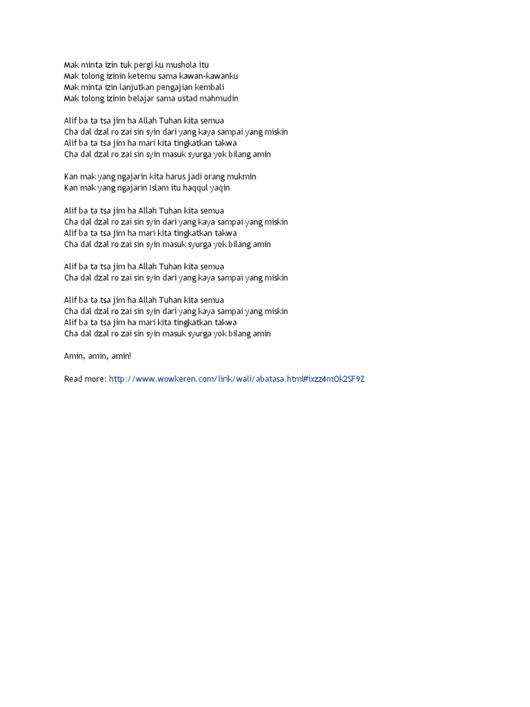 Abatasa Lyrics And Music By Wali Arranged By Rrq Khanza O2www.smule.com