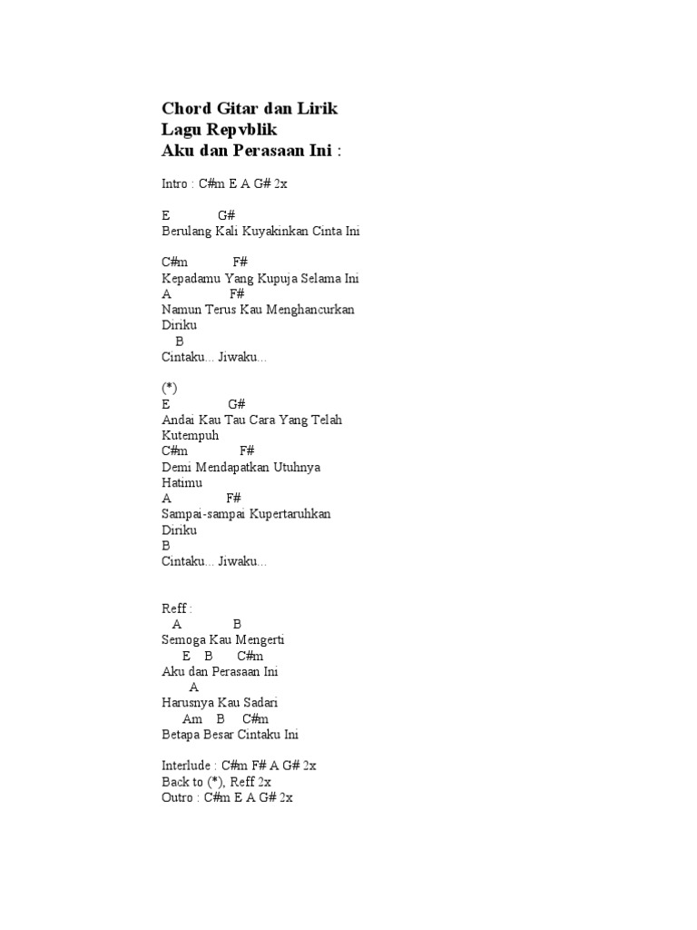 Chord Gitar Dan Lirik Lagu Repvblik Aku Dan Perasaan Ini J3no62m75ynd