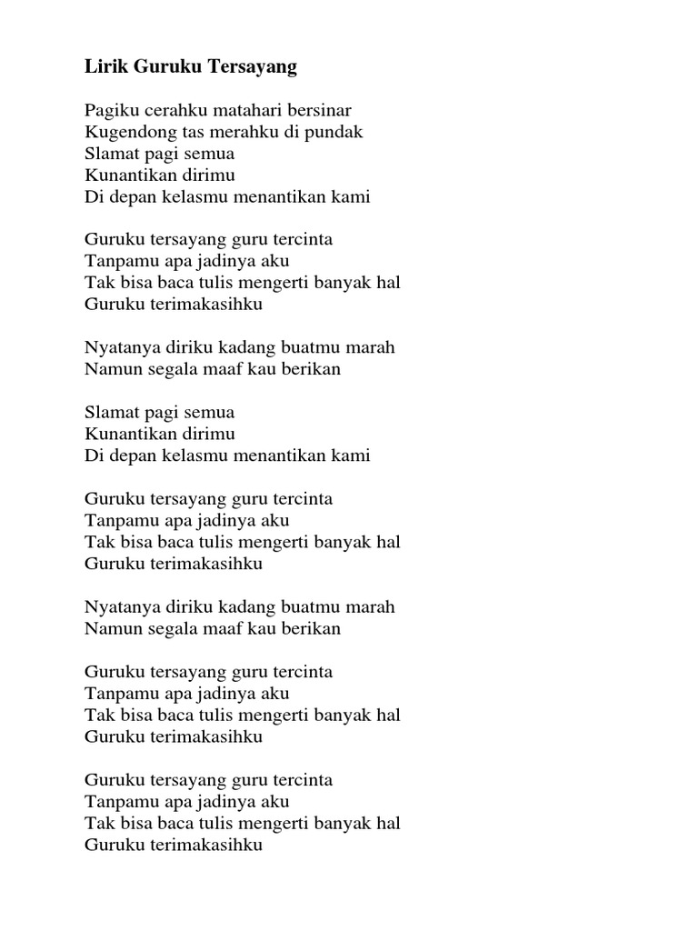 Lirik Lagu Guruku Tersayang Kumpulan Artikel Bermanfaat Dan Ilmu Pengetahuan