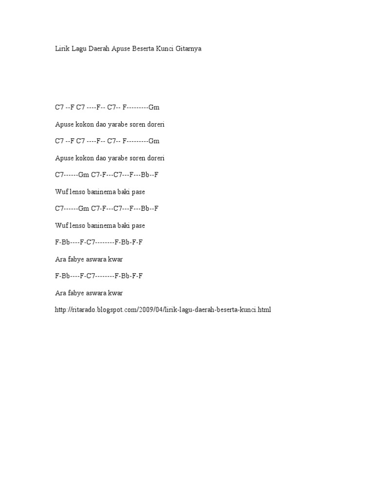 Chord Lagu Daerah Apuse Papua Chord Gitar Indonesia Kumpulan Kunci Gitar Musik Indonesia Dan Mancanegara