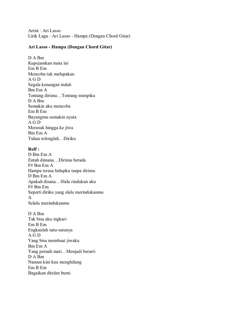 Chord Gitar Lagu Ari Lasso Hampa Fyd Everything You Needwww.aldifahrizii.tech