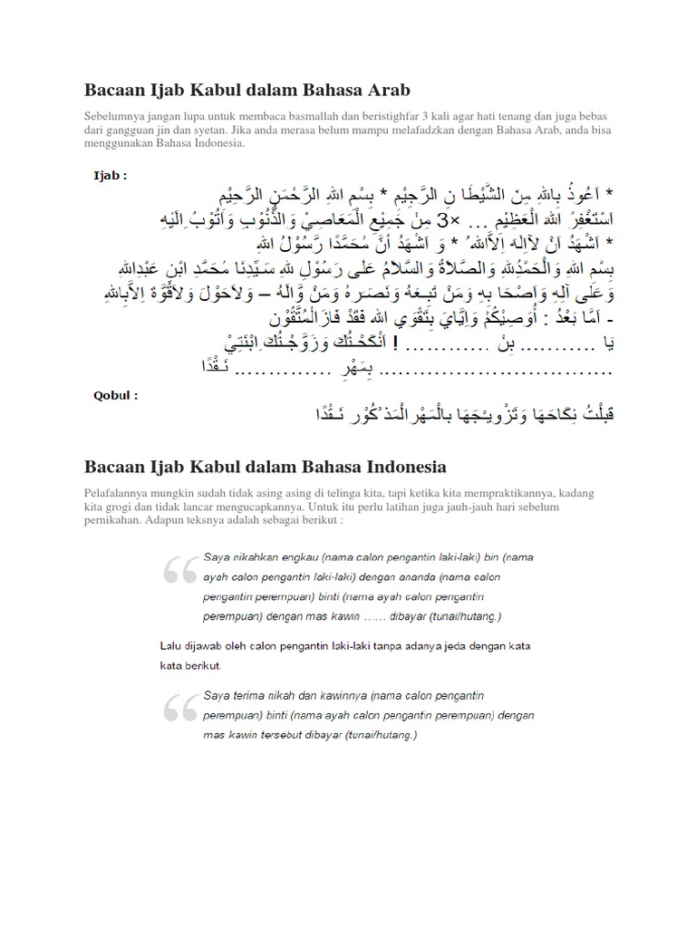 Teks Lengkap Ijab Kabul Dalam Bahasa Indonesia Dan Bahasa Arab Pecihitam Org