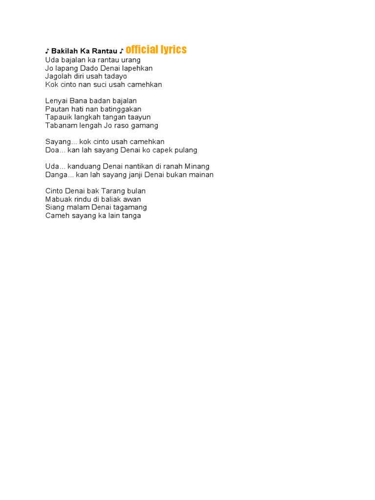 Lirik Bakilah Ka Rantau Ipank Ft Kintani Lirik Lagu Minang Facebook