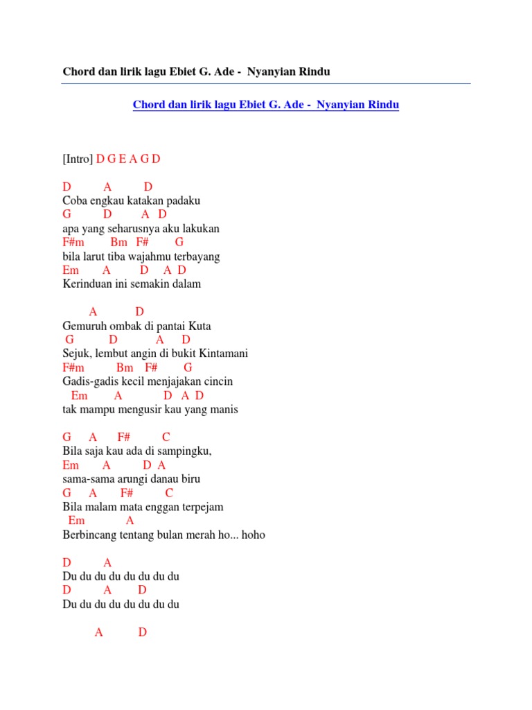 Chord Kunci Gitar Lirik Lagu Nyanyian Rindu Ebiet G Ade Bila Saja Kau Ada Di Sampingku Tribunstyle Com