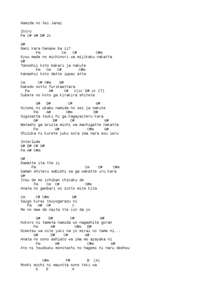 Namida No Sei Janai Chords Txtwww.scribd.com