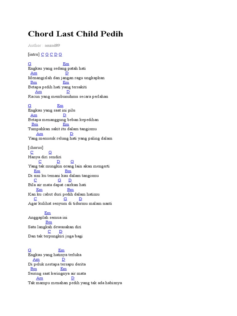 Last Child Pedih Chord Kunci Gitar Lirik Chord Gitar Online