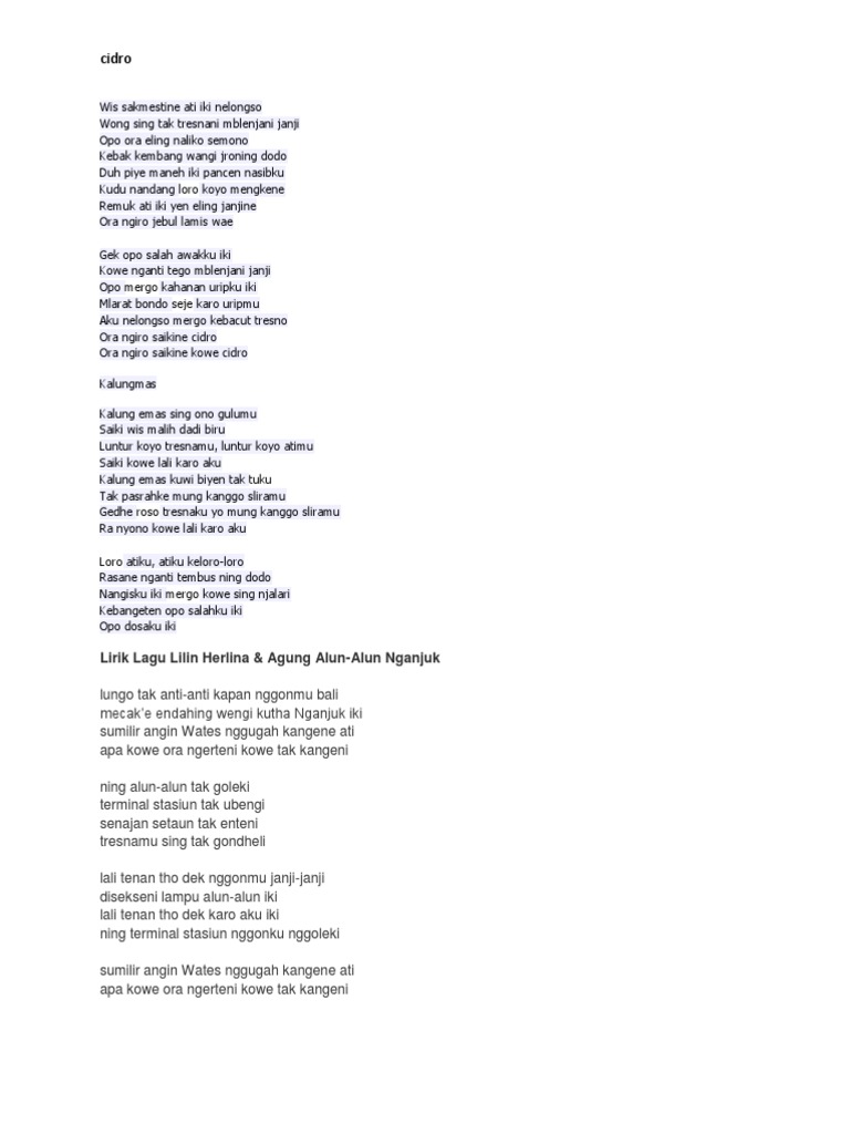 Lirik Lagu Cidro Nella Kharisma Lorok