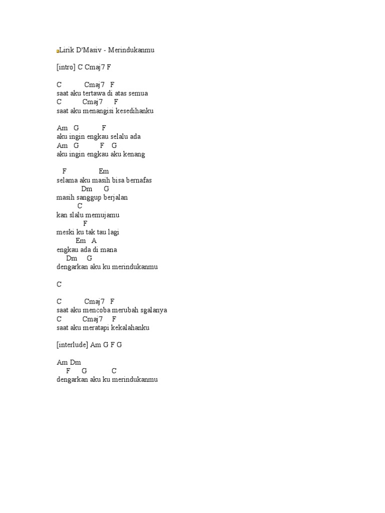 Catatan Not Lagu D Masiv Merindukanmu Piano Pianika Pemula Aulia S World