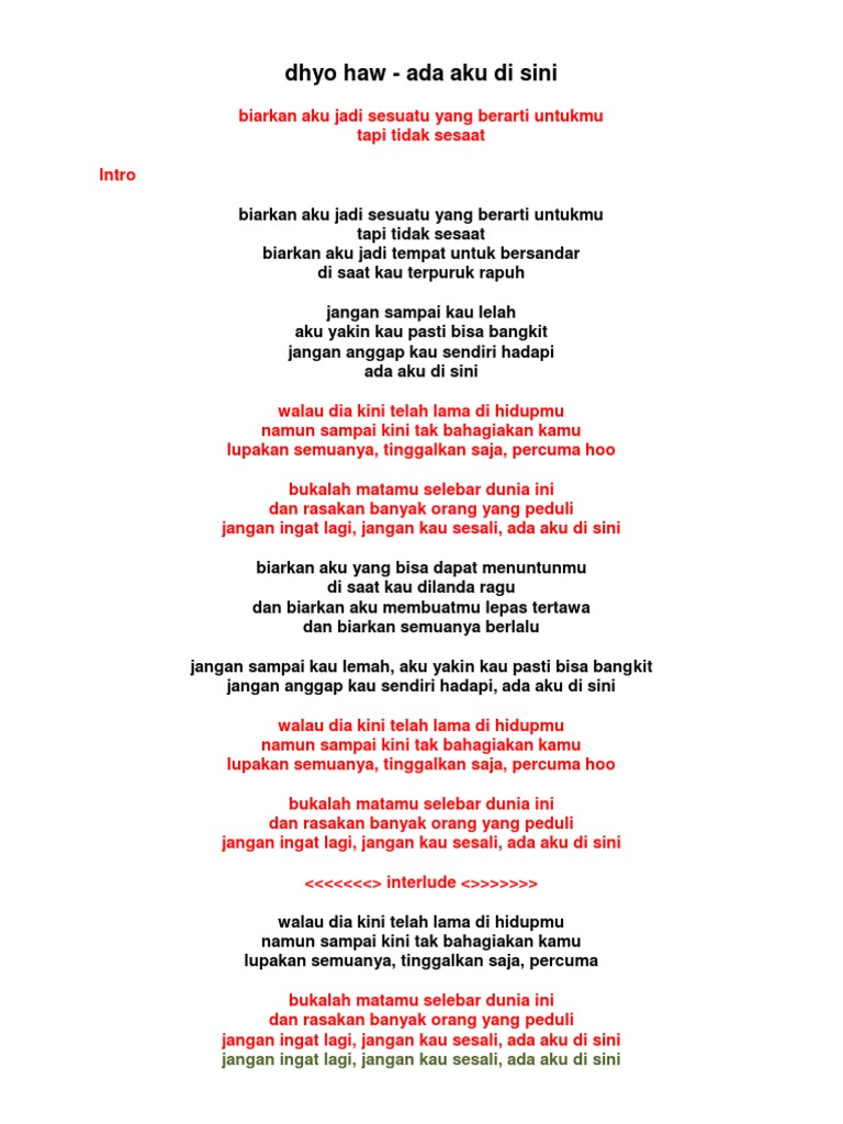 Romantis Ini Chord Dan Lirik Lagu Ada Aku Disini Milik Dhyo Haw Semua Halaman Sonora Id