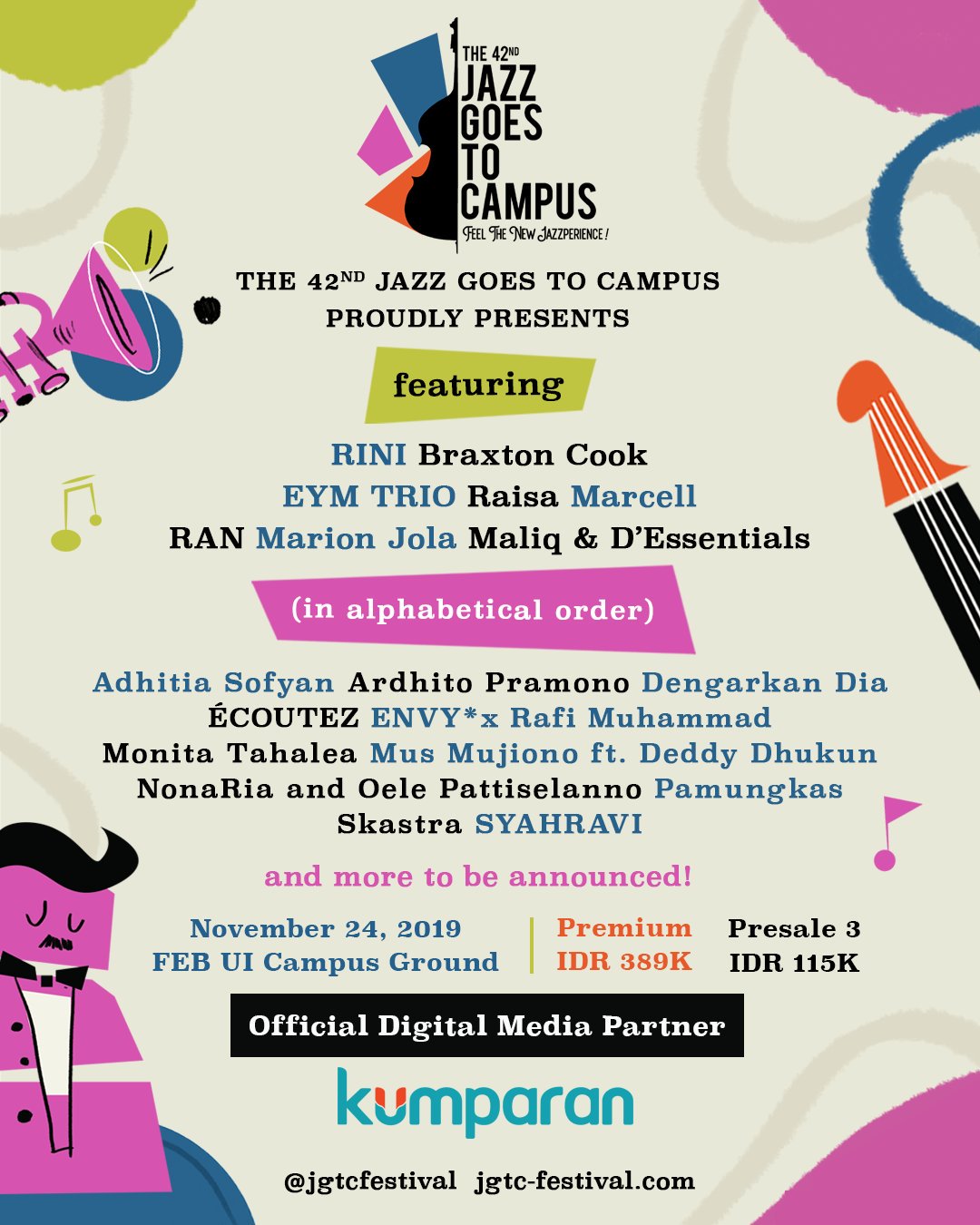 Kumparan On Twitter The 42nd Jazz Goes To Campus Proudly Presents Phase 3 Lineup Featuring Rini Braxton Cook Eym Trio Raisa Marcell Ran Marion Jola Maliq D Essentials And Many Others More