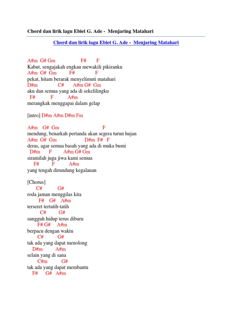 Chord Gitar Dan Lirik Lagu Menjaring Matahari Ebiet G Ade Tribun Manado