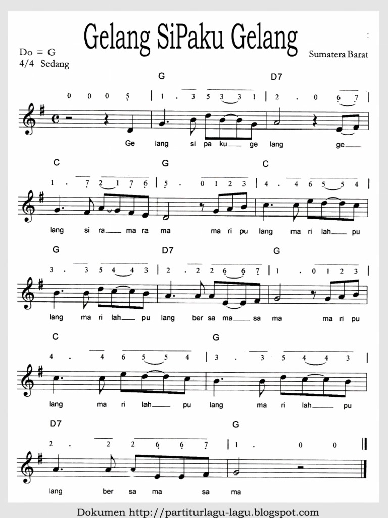 Notasi Lagu Gelang Sipaku Gelang Brainly Co Id