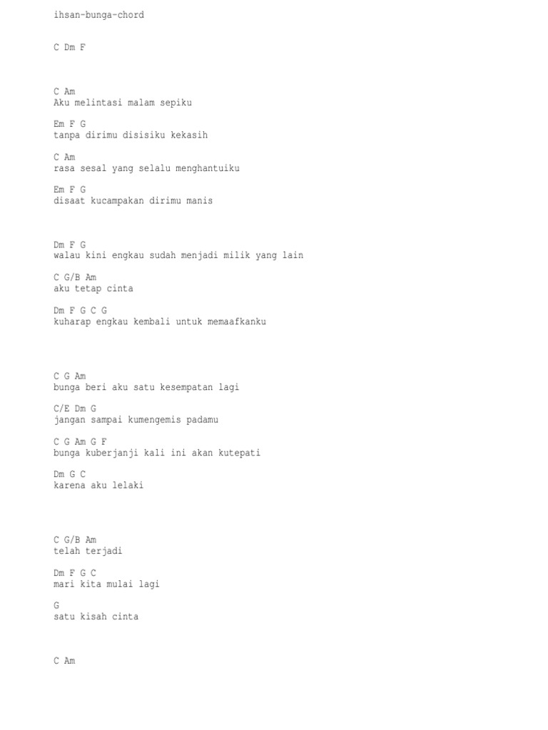 Tag Chord Lagu Ihsan Chord Kunci Gitar Dan Lirik Lagu Bunga Karena Aku Lelaki Ihsan Aku Melintasi Malam Sepiku Tribun Solo