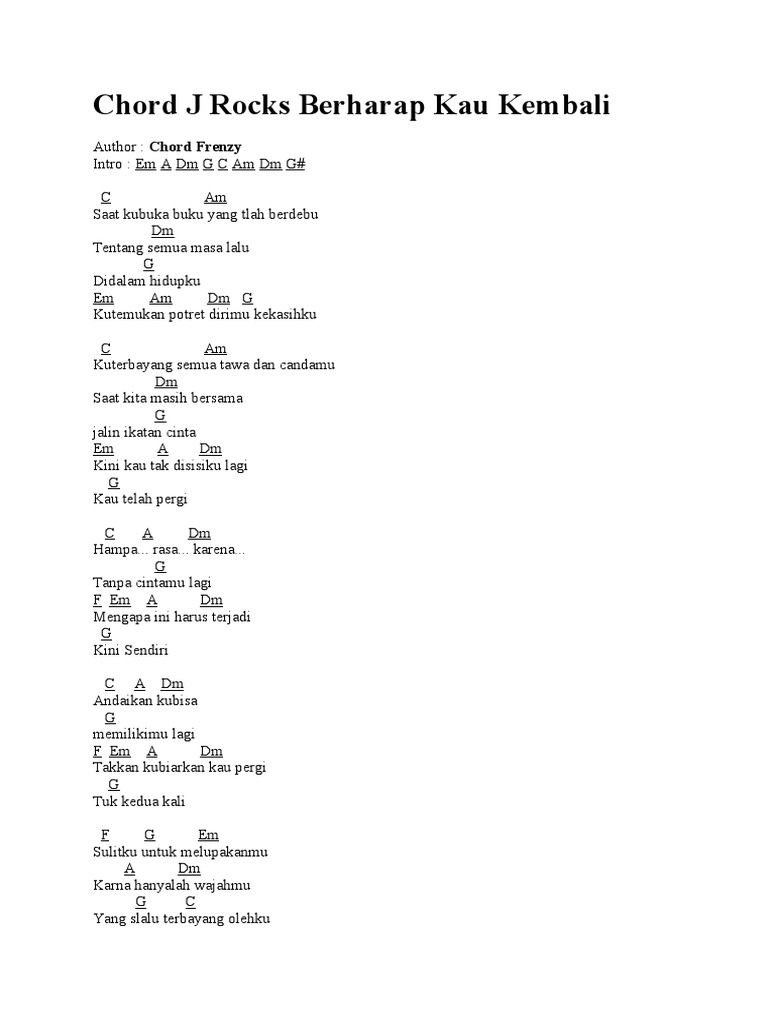 Chord Dan Lirik J Rocks Berharap Kau Kembali Intro Em A Dm G C Am Dm G C Am Saat Kubuka Buku Yang Tlah Be Jrock Songs Original Song