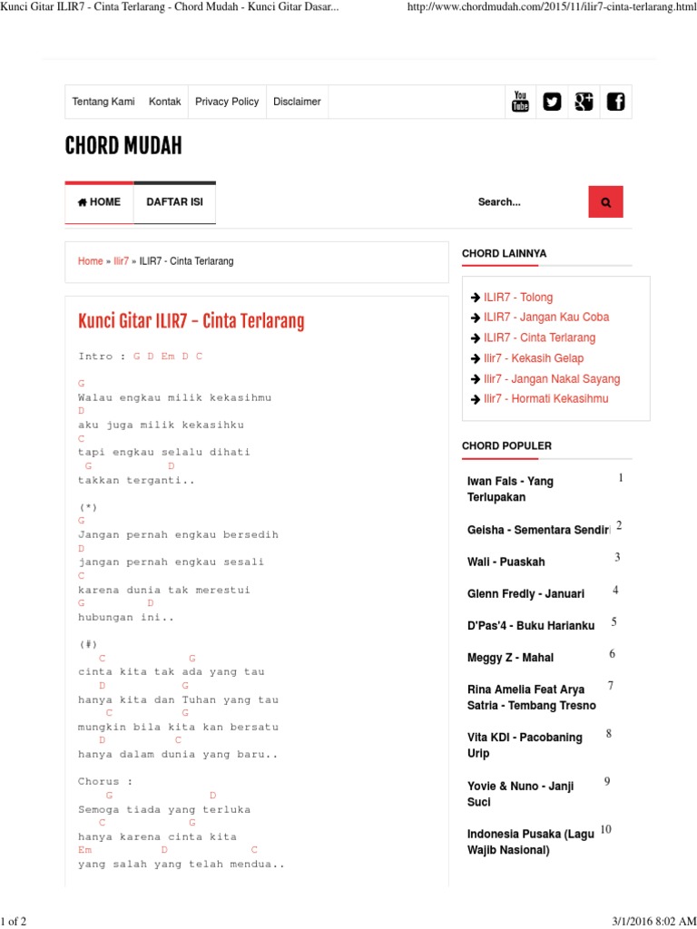 Chord Gitar Lagu Ilir7 Salah Apa Aku Chord Gitar Lagu Lagu Kenangan