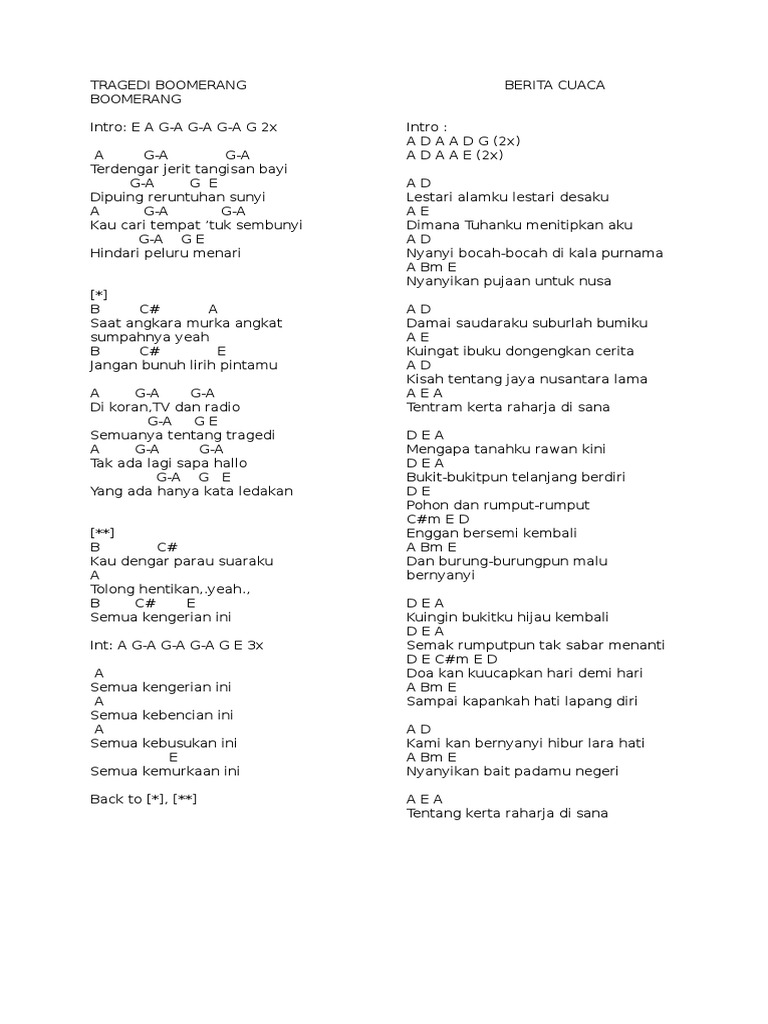 Chord Dan Lirik Lagu Berita Cuaca Lestari Alamku Lestari Desaku Gombloh Dimainkan Ulang Boomerang Tribun Solo