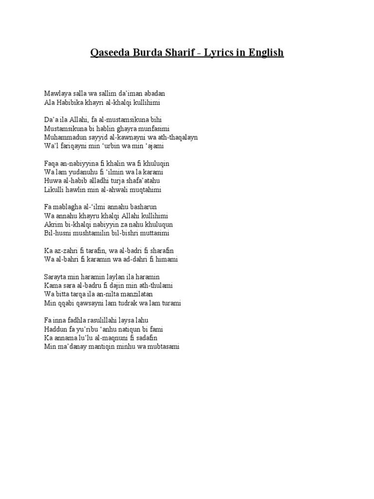 Qaseeda Burda Sharif Background And Lyric In English Prophets And Messengers In Islam Religious Behaviour And Experience