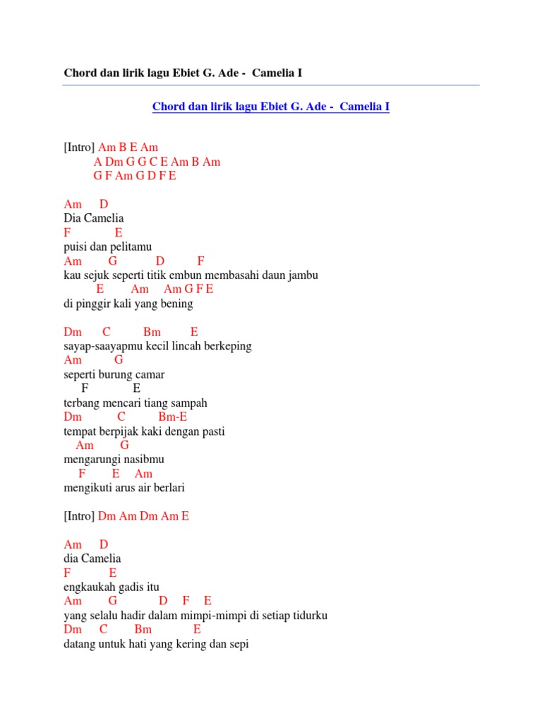 Kunci Gitar Ebiet G Ade Camelia 1 Kunci Gitar Chord Dasar Lirik Lagu