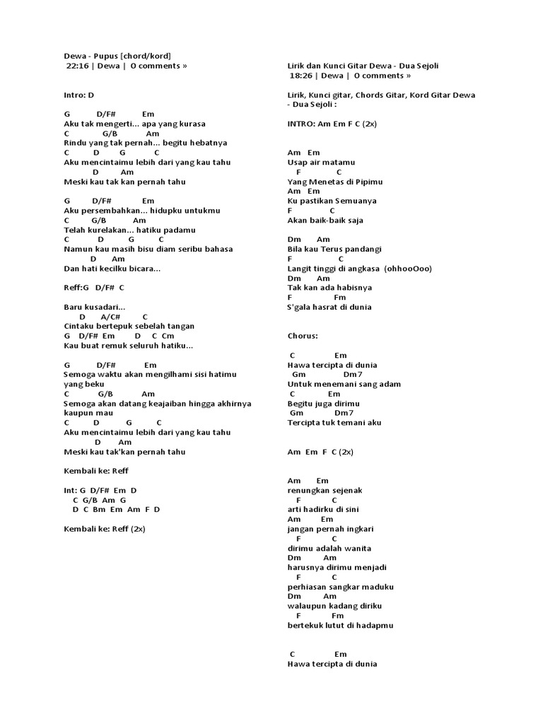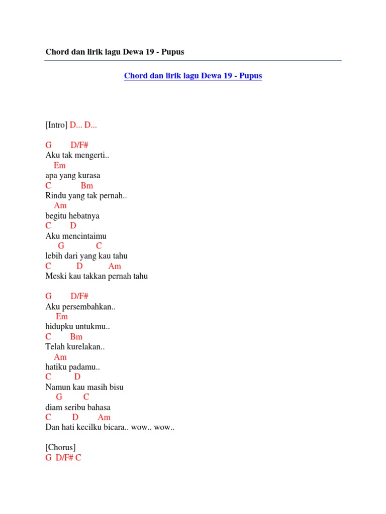Dewa 19 Pupus Kumpulan Lirik Dan Cord Lagu Terkomplit