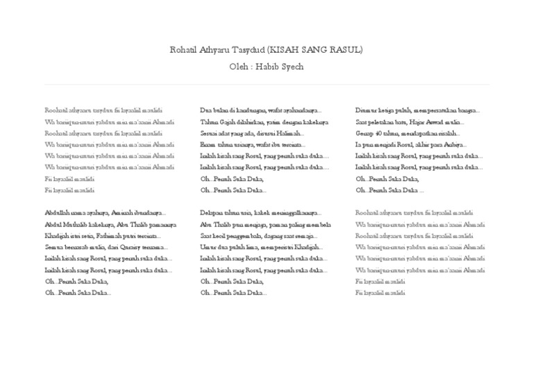Lirik Lagu Rohatil Athyaru Tasydud Kisah Sang Rasul Oleh Habib Syech Zona Baru Kamu