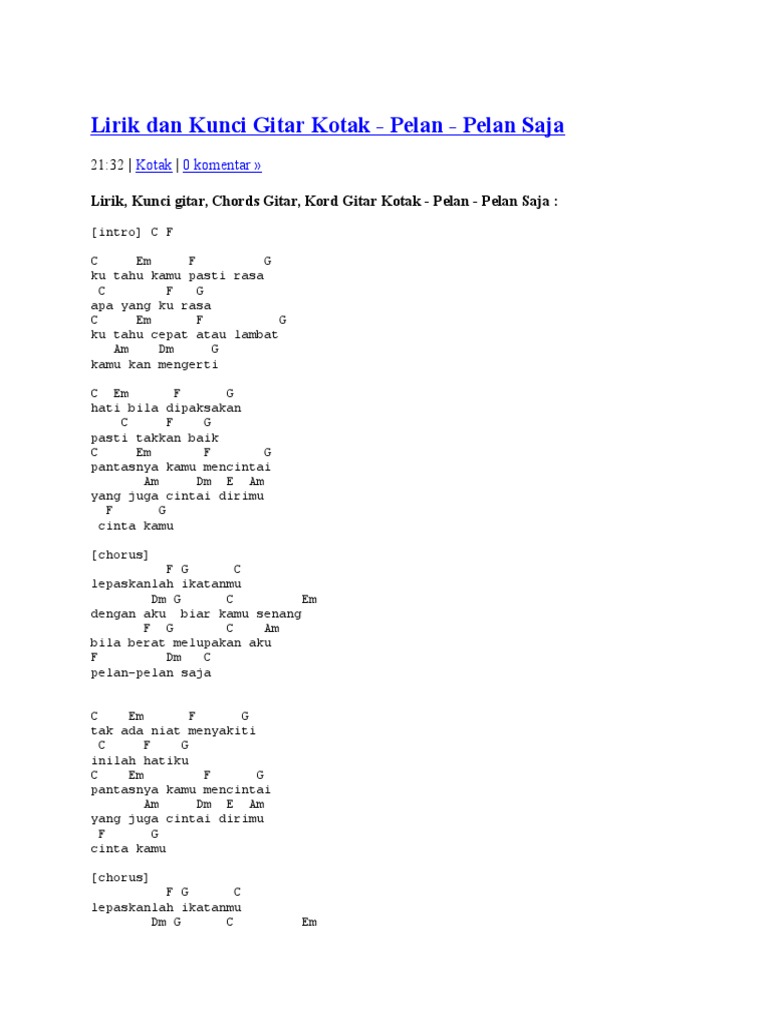 Tag Kotak Chord Gitar Dan Lirik Lagu Pelan Pelan Saja Dari Kotak Lepaskanlah Ikatanmu Dengan Aku Pos Kupang