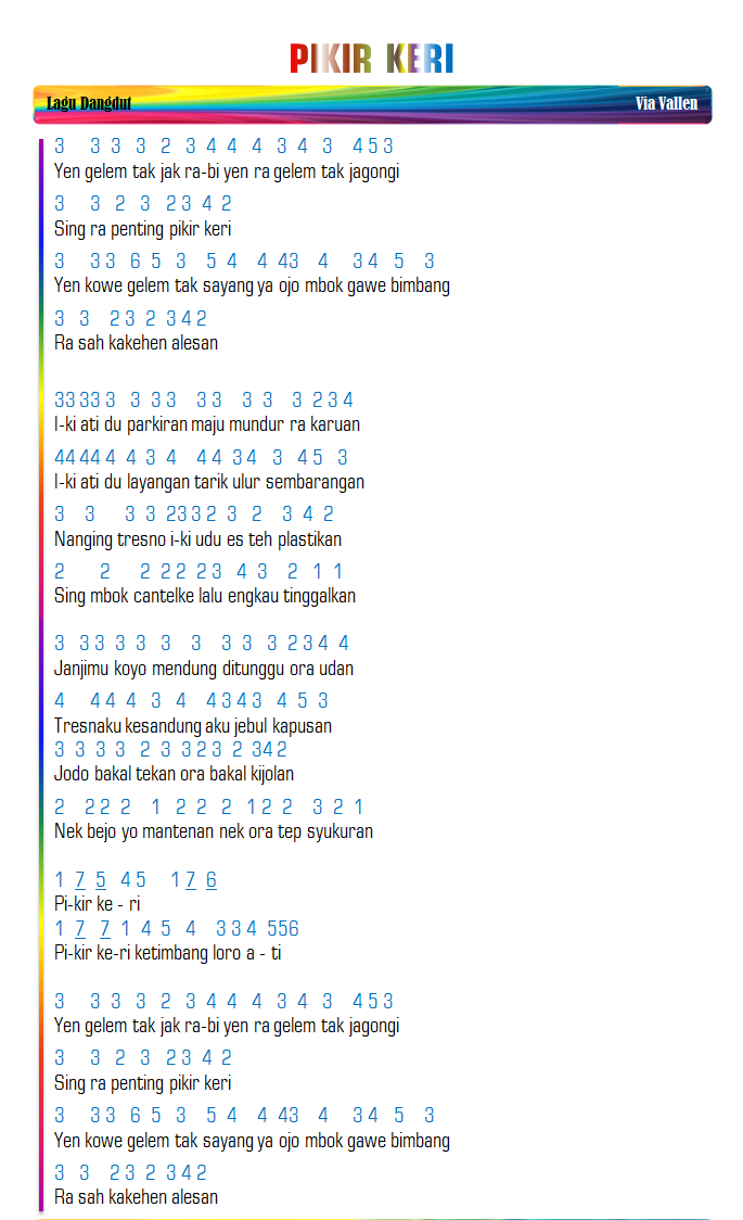 Not Angka Dan Lirik Lagu Top Not Angka Dan Lirik Lagu Pikir Keri Via Vallen Nella Kharisma