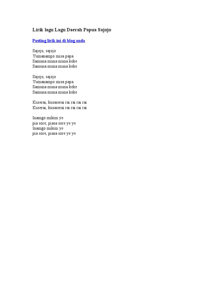Video Lirik Sajojo Youtube