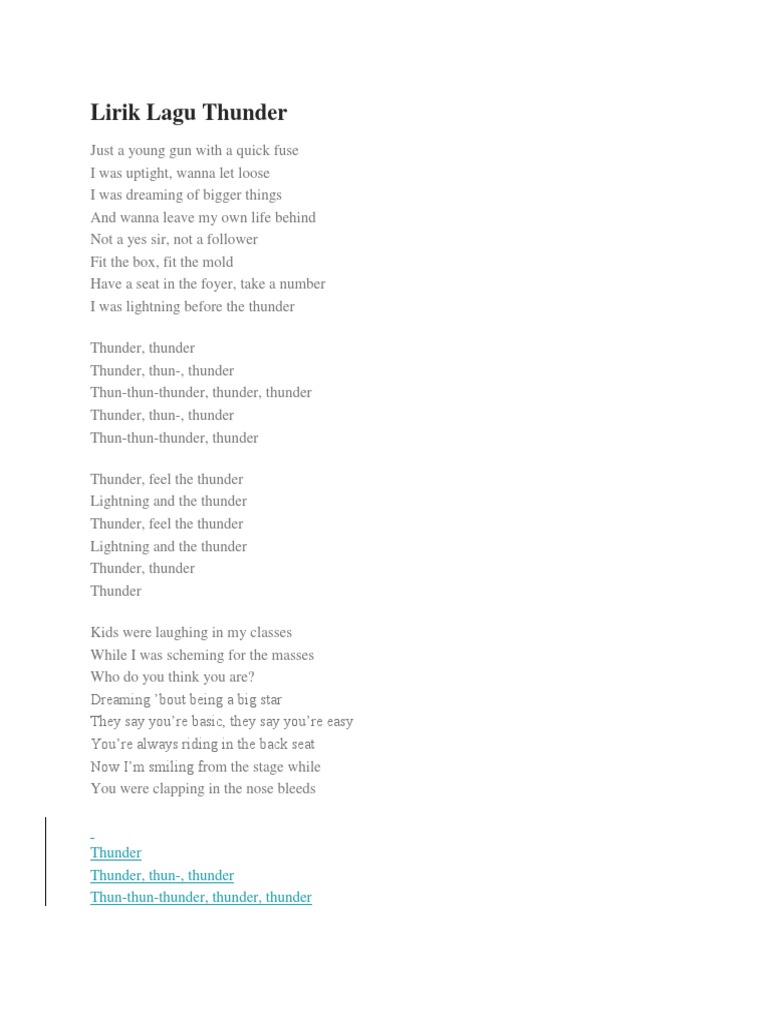 Lirik Lagu Thunder Youtube
