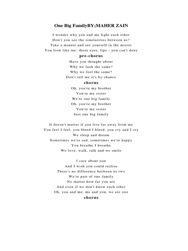 Maher Zain One Big Family Vocals Only Lyrics Only Lyrics Maher Zain Songs Maher Zain