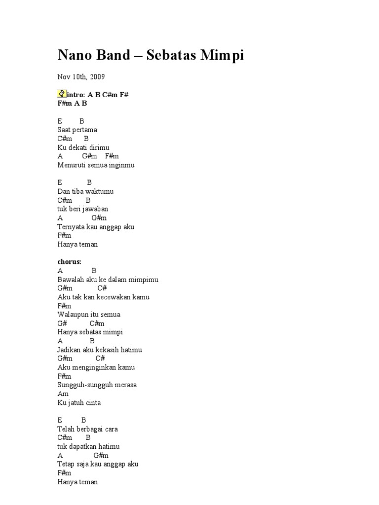 Lirik Dan Chord Lagu Sebatas Mimpi Dari Nano Band Kompas Com Line Today