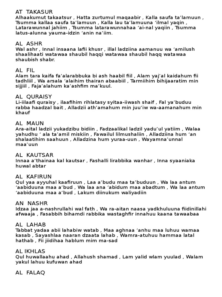 Bacaan 21 Surat Pendek Juz Amma Bahasa Latin Untuk Tarawih Dan Witir