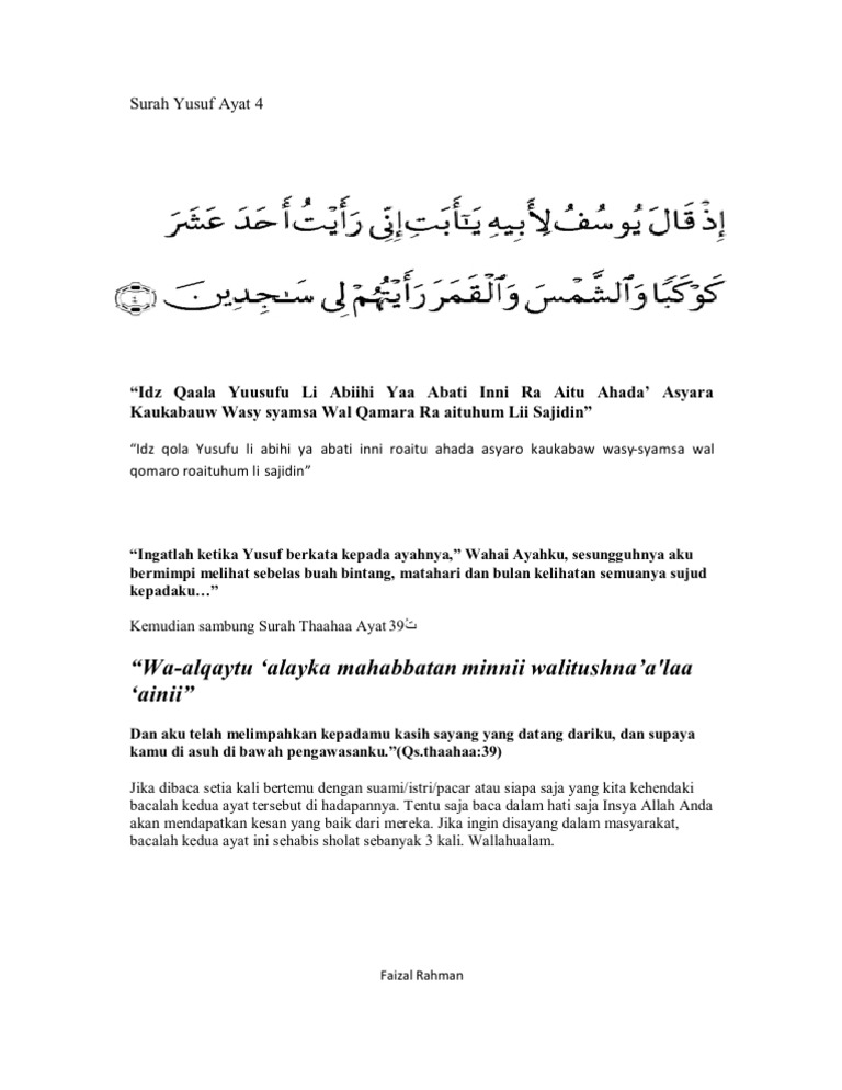 Surah Yusuf Ayat 4 Surah Thahaa Ayat 39 Surat An Nisa Ayat 84 Noval Ale Site