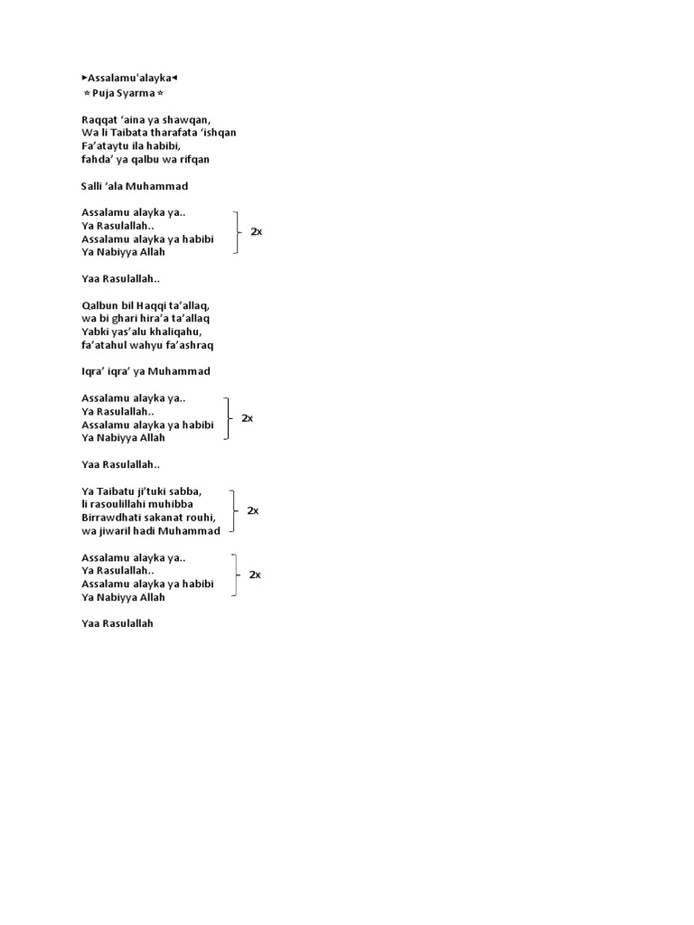 Kumpulan Lirik Syair Sholawat Lirik Assalamu Alayka Assalamu Alaika Ya Rasulallah Roqqota Ainaya Lirik Teks Latin Lirik Assalamu Alayka Maher Zain Http Www Facebook Com Kumpulanliriksyairsholawat Posts 150352952325428 Lirik Assalamu