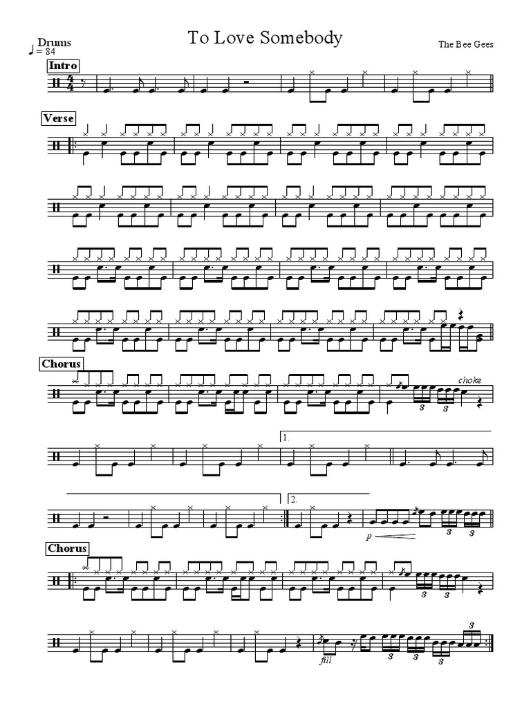 The Bee Gees To Love Somebody Sheet Music In A Major Transposable Download Print Sku Mn0075836