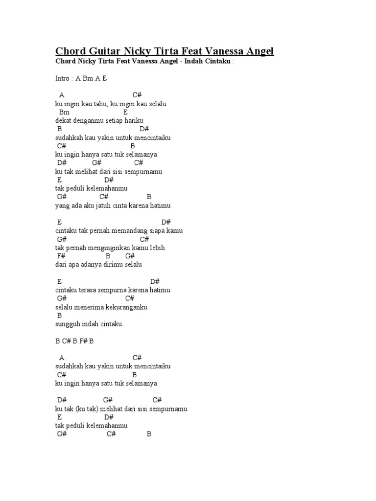 Kunci Gitar Chord Dan Lirik Lagu Indah Cintaku Vanessa Angel Feat Nicky Tirta Bangka Pos