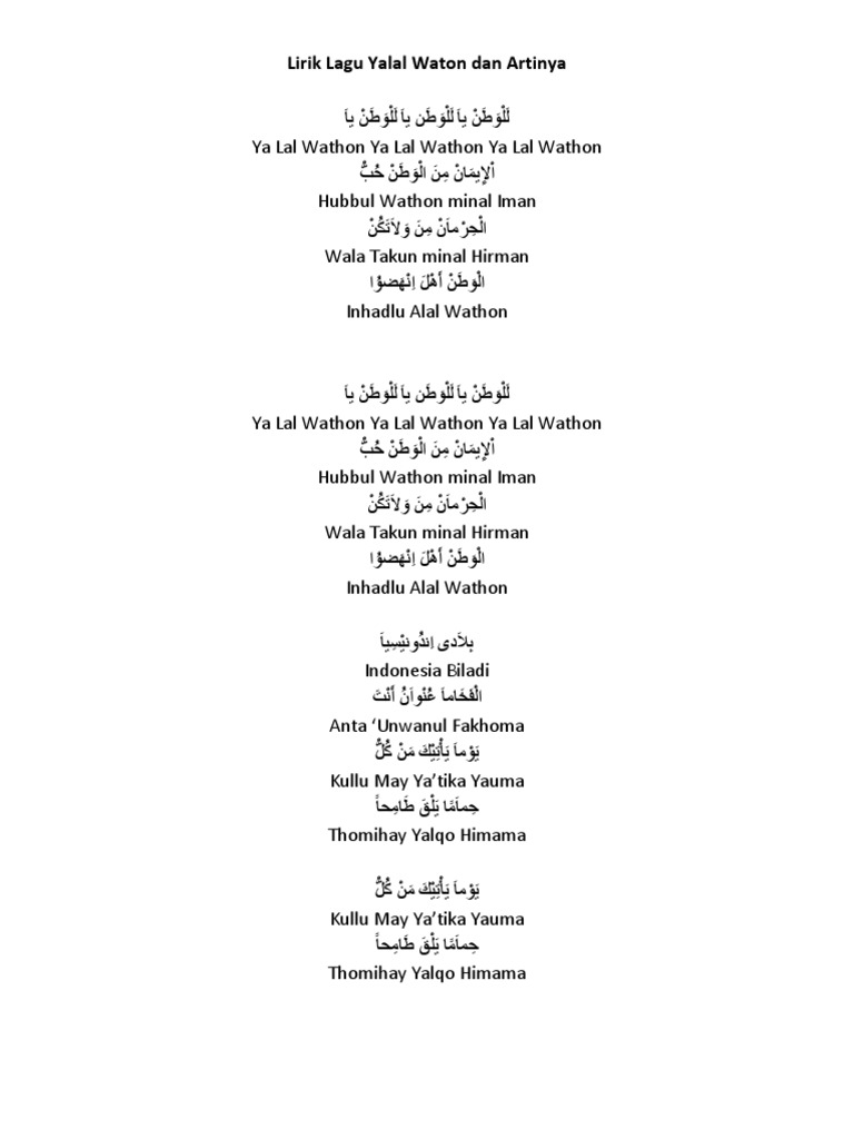 Lirik Lagu Yalal Waton Cinta Tanah Air Lirik Plus